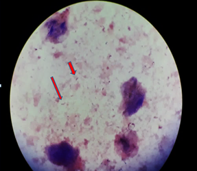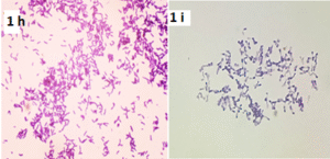 Figures 1 h & 1i: Gram stain showing club-shaped bacilli in V and L arrangement